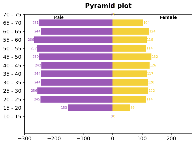 plt.title("Pyramid plot", loc="center", pad=15, fontsize=15, fontweight="bold")