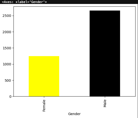 df2.groupby('Gender')['Customer ID'].count().plot.bar(color=['yellow','black'])