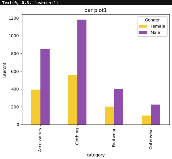 d2 = df2.groupby(['Category','Gender'])['Customer ID'].count().unstack(1)# 성별이 컬럼으로