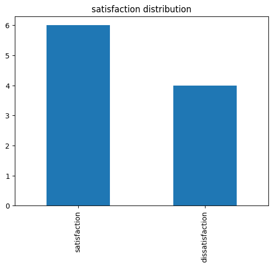 plt.title('satisfaction distribution')