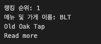 - 목표 수집 데이터: 가게 이름, 가게 메인 메뉴, 각 가게 소개 페이지