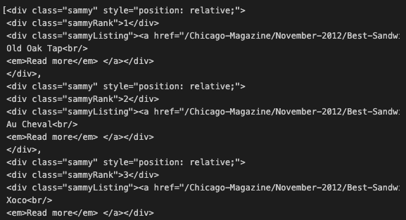 tmp_one = soup.find_all('div', 'sammy')[0]