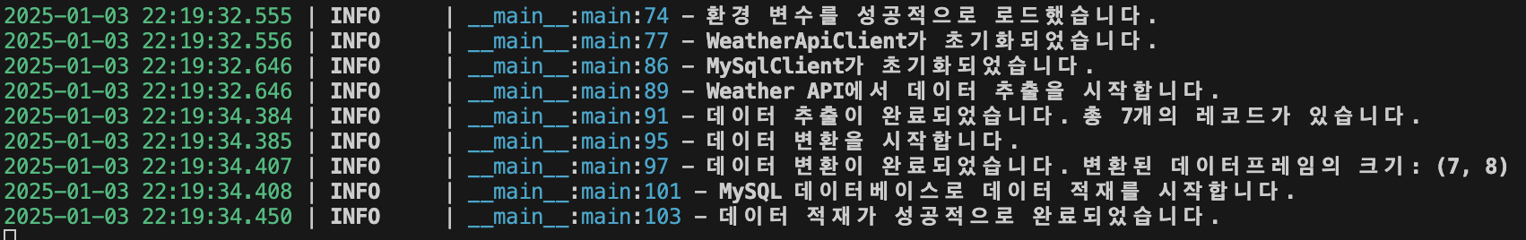 logger.info("Weather API에서 데이터 추출을 시작합니다.")