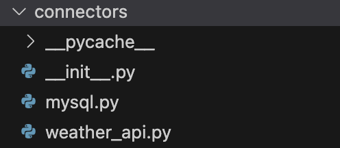 패키지 불러오기from etl_module.connectors.weather_api import WeatherApiClient # 별도 생성한 클래스. 하단 etl_module 폴더에 코드 작성from etl_module.connectors.mysql import MySqlClient # 별도 생성한 클래스. 하단 etl_module