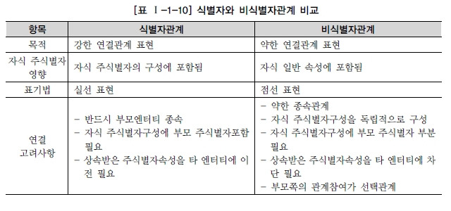 • 주식별자를 구성하는 속성의 수는 유일성을 만족하는 최소한의 속성으로 구성되어야 합니다.
