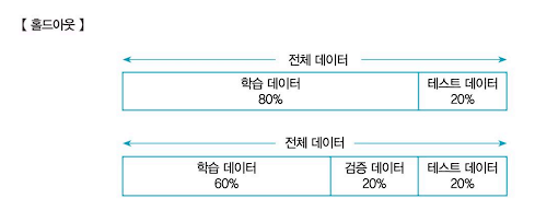 - 홀드아웃은 전체 데이터를 랜덤하게 추출해 학습 데이터와 테스트 데이터로 분리하는 방식이다.