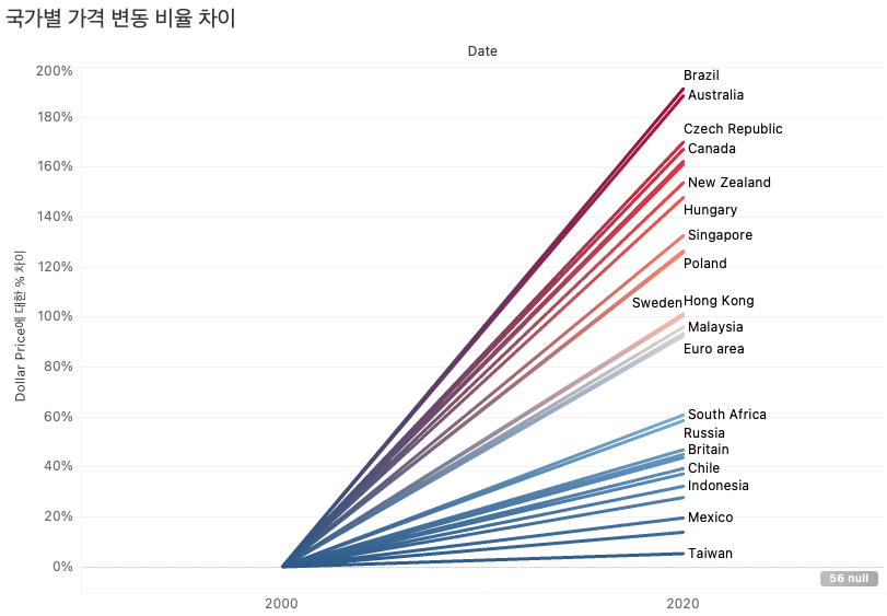 [가격 변동 라인] 국가별 빅맥 가격 변동 차이